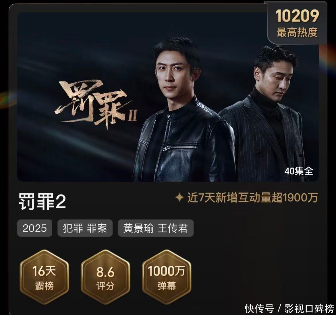 黄景瑜、王传君主演的《罚罪2》热度值破万,该剧也是爱奇艺2026年首部破万的作品,观众反响也不错,再加上新华社等主流媒体的深入报道,进一步引爆公众关注,热度与口碑的双线飙升,《罚罪2》也在全网范围内再度掀起了新一轮的追剧狂潮。